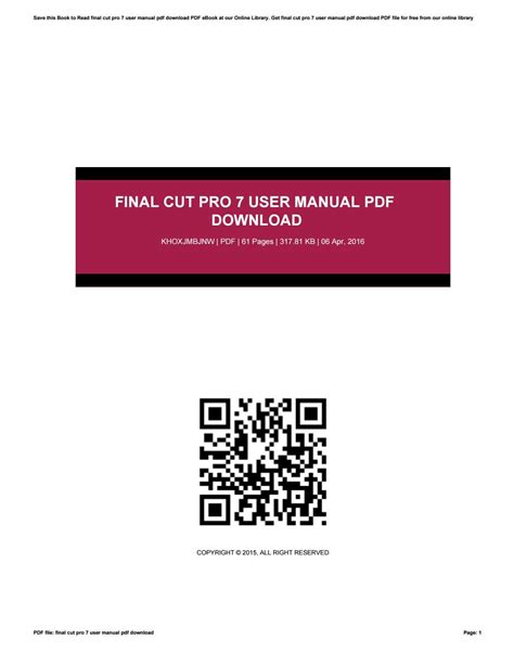 final cut pro 7 manual pdf Kindle Editon By Click Button. final cut pro 7 manual pdf it’s easy to recommend a new book category such as Novel, journal, comic, magazin, ect. You see it and you just know that the designer is also an author and understands the challenges involved with having a good book. You can easy klick for detailing book and you can read it online, even you can download it